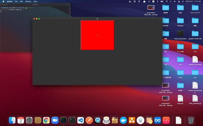 ※ PyenvのPythonからTkinterを利用する場合、別途インストールすべき手順があります。macを利用していて、PyenvのPythonからTkinterを利用する方は、【もう迷わない!? mac編】Pyenv環境からTkinterをインストールを一読することをおすすめします。